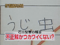 岡村t:さぁ、くまの次、石川さん の答え。 石川:ハイ 岡村t:見てみたいとおもいま す。 佐野t:北海道の根室市の農家 では「うじ虫」に襲われ〜。 岡村t:ハイ。かわいくないです か? |