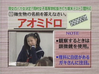 岡村t:ガキさん。 ハマグチェ理事長:キタガキさん 岡村t:ねぇ。きたよぉ。 矢部:理事長新垣さんです。 岡村t:理事長楽しみにして ます。ガキさんの答え。 ハマグチェ理事長:ガキさんガッツ ポーズだね。 矢部:新垣さんね。 新垣:ハイ、新垣です。 岡村t:確かねぇガキさんはね ぇ理科得意ということで手あ げてくれてくれました。ガキさ んのアオミドロ、なんて書いた んでしょうか。こちら 佐野t:ブットイマン 岡村t:ブットイマン |