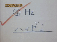 岡村t:うちのクラスの2トップで す。まずは加護 加護:ハイ 岡村t:加護はヘルツをなんて 書いたんでしょうか。 こちら 佐野t:ハイゼン 岡村t:何だこれドイツ語か? |